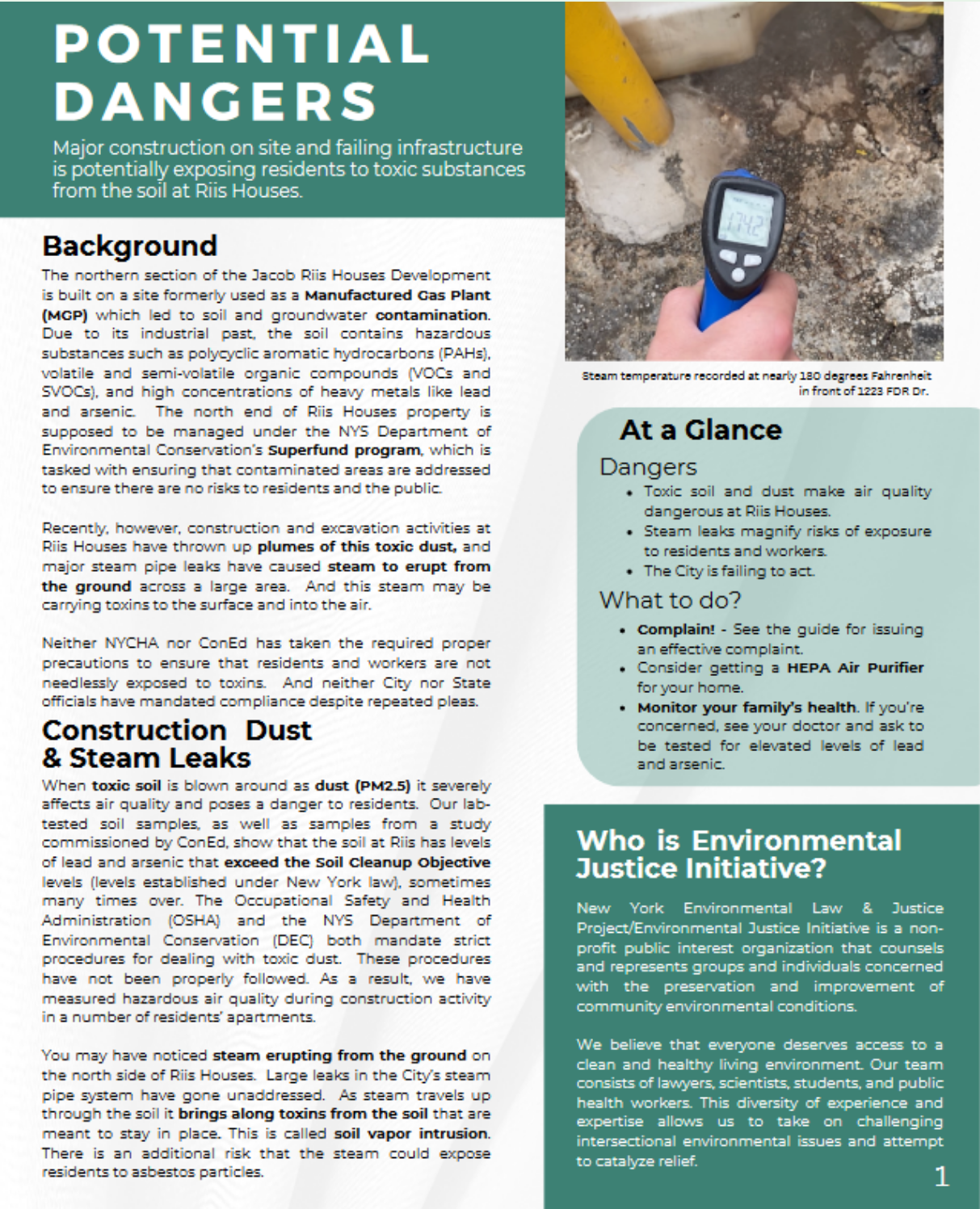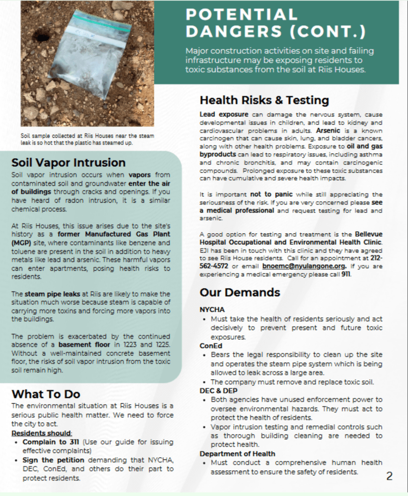 “Public housing tenants first learned about toxic contamination underneath the Riis Houses in 2005. The NYCHA development is built on top of what was once a 19th century manufactured gas plant notorious for spewing noxious substances.